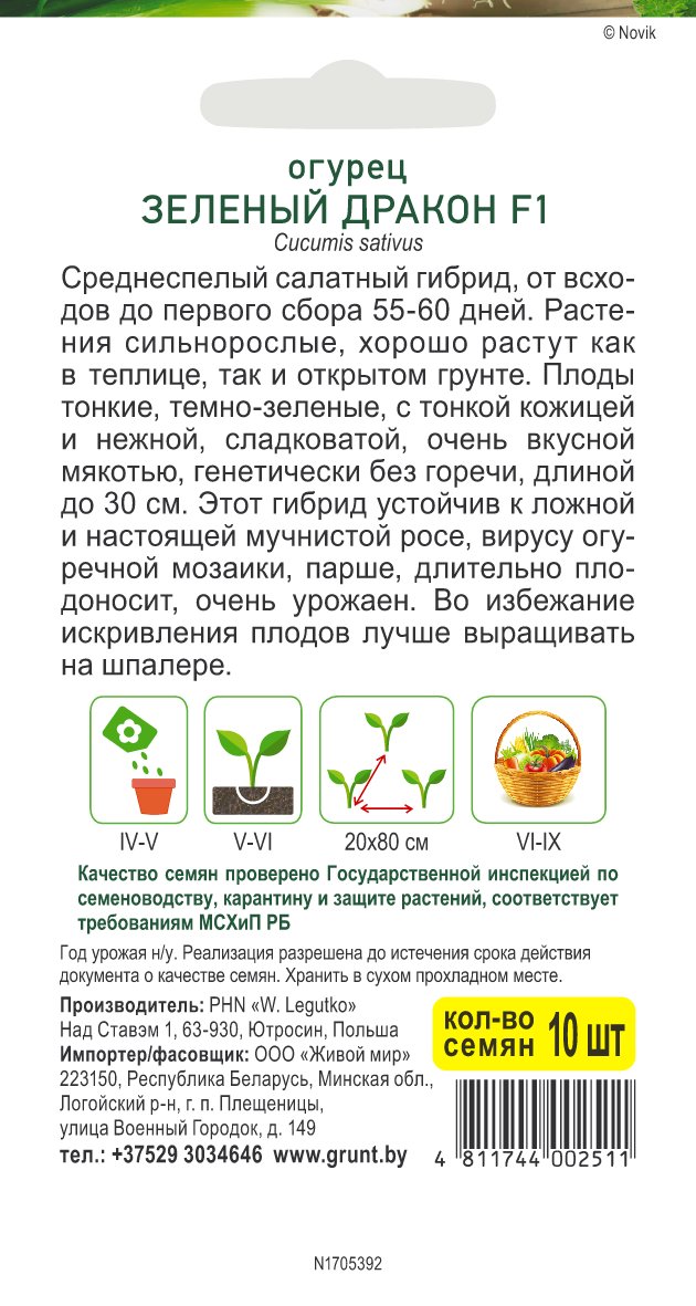 Огурец Зеленый Дракон F1 (W. Legutko) 10 шт, РБ