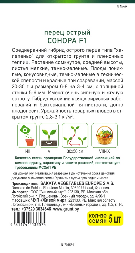 Перец острый Сонора F1 (Sakata) 5 шт, РБ