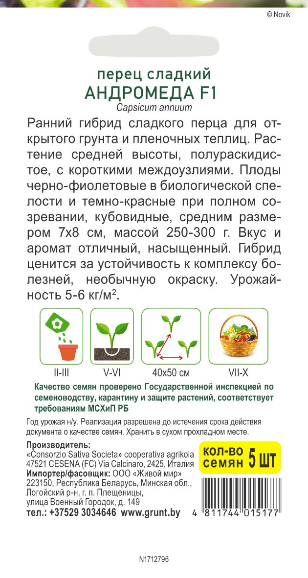 Перец сладкий Андромеда F1 (Sativa) 5 шт, РБ