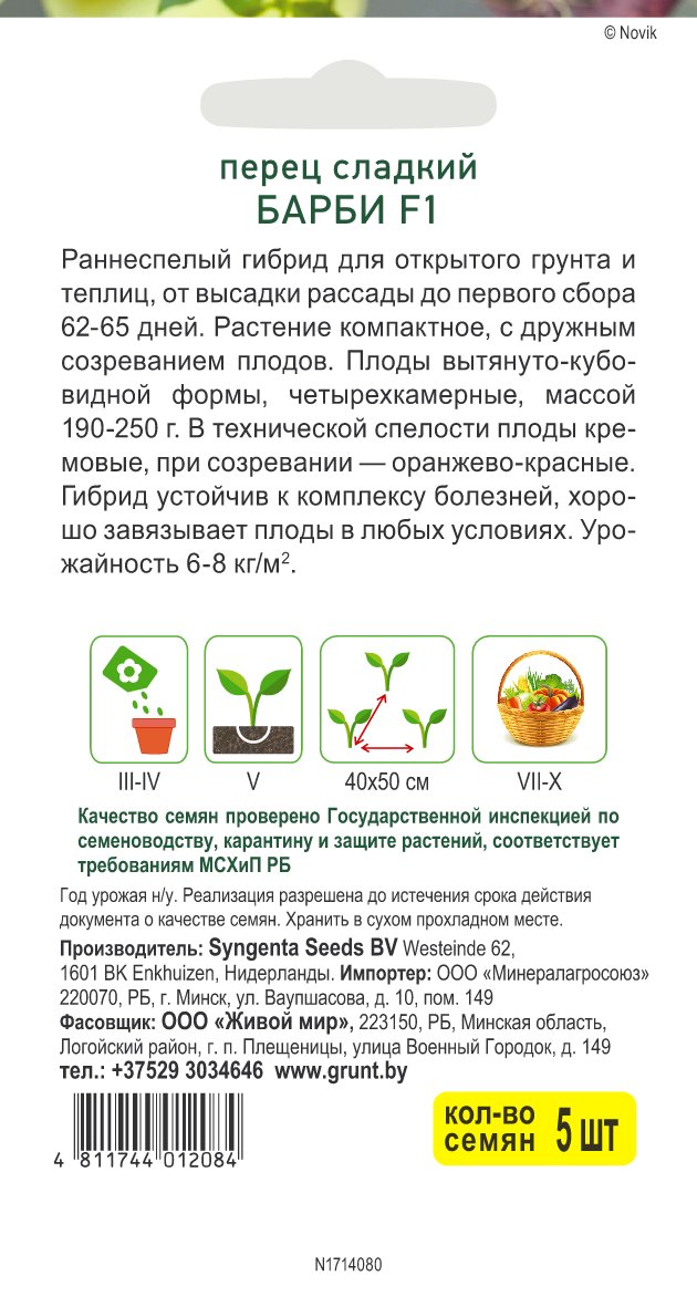 Перец сладкий Барби F1 (Syngenta) 5 шт, РБ