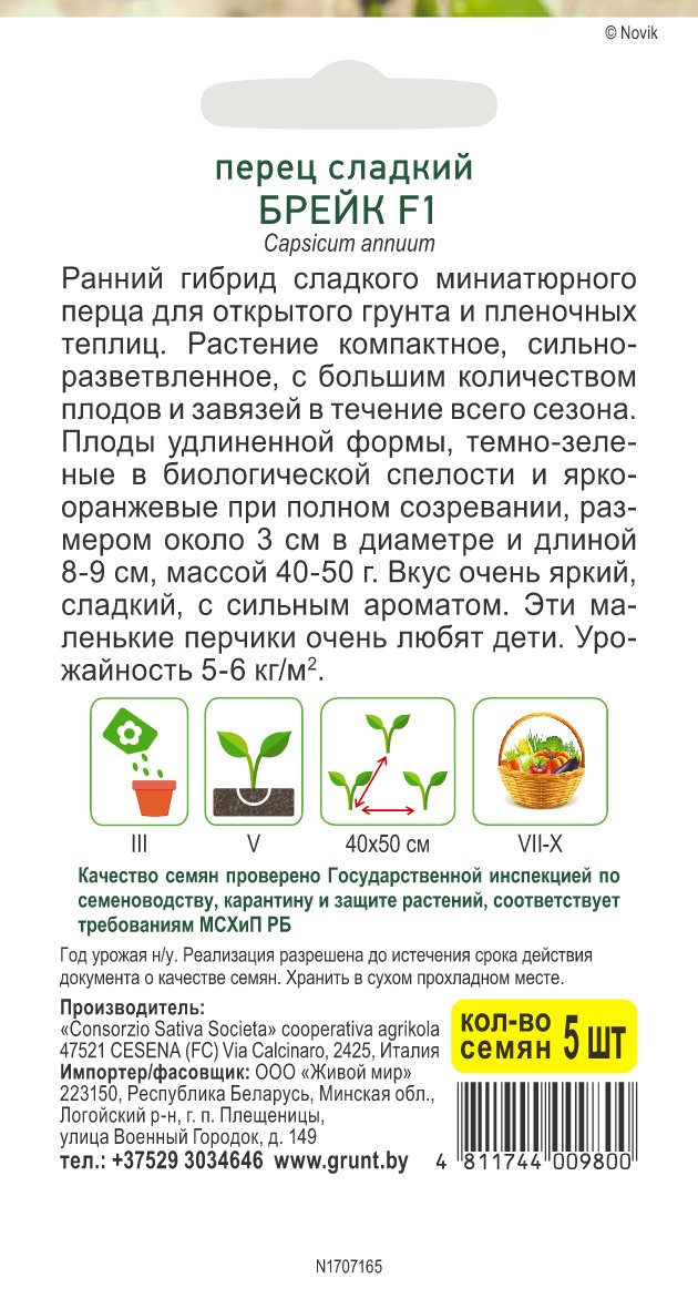 Перец сладкий Брейк F1 (Sativa) 5 шт, РБ