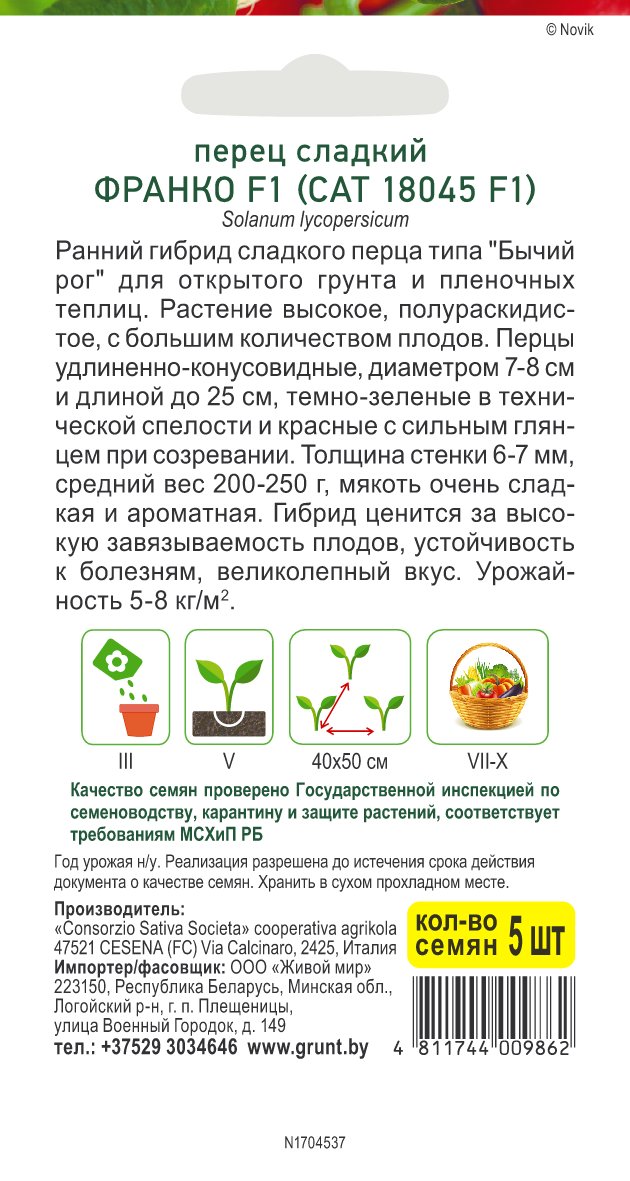 Перец сладкий Франко F1 (CAT 18045 F1) (Sativa) 5 шт, РБ