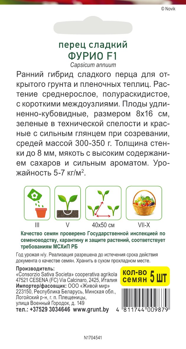Перец сладкий Фурио F1 (САТ 18051 F1) (Sativa) 5 шт, РБ