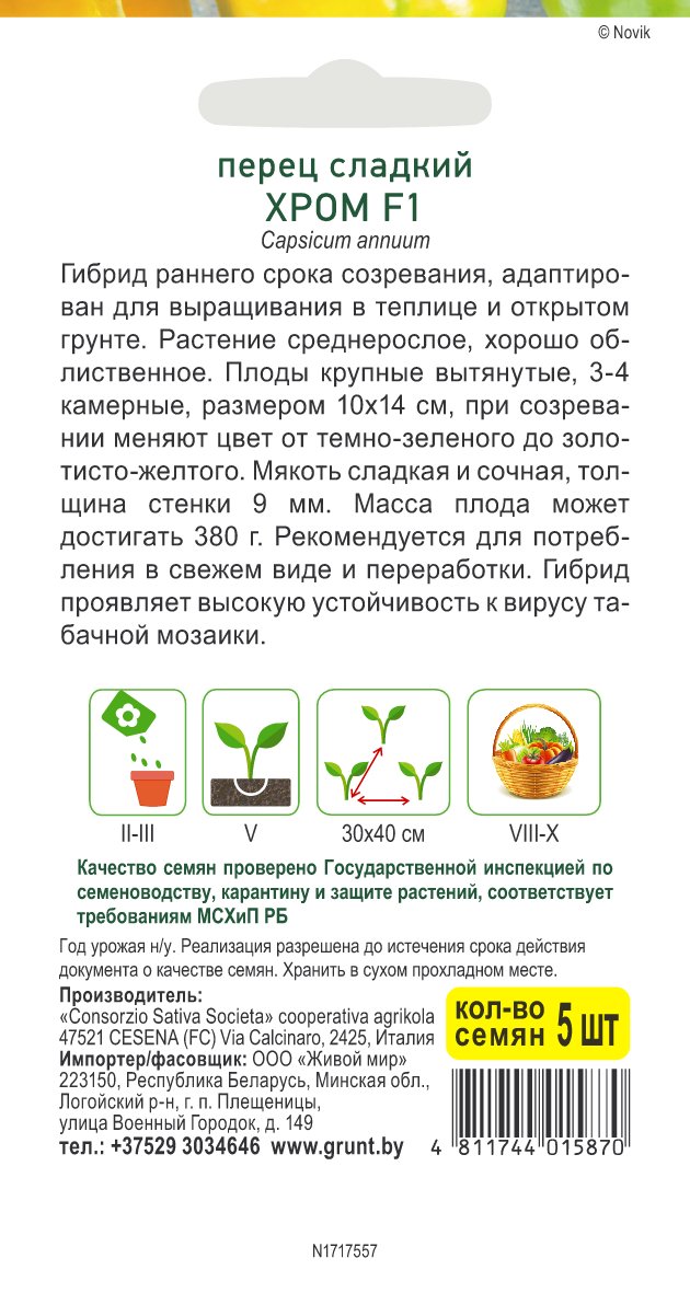 Перец сладкий Хром F1 (Sativa) 5 шт, РБ