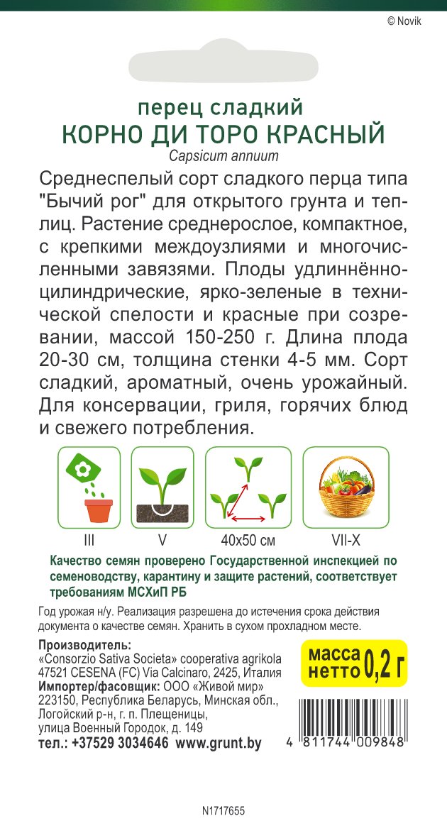 Перец сладкий Корно ди Торо красный (Sativa) 0,2 г, РБ