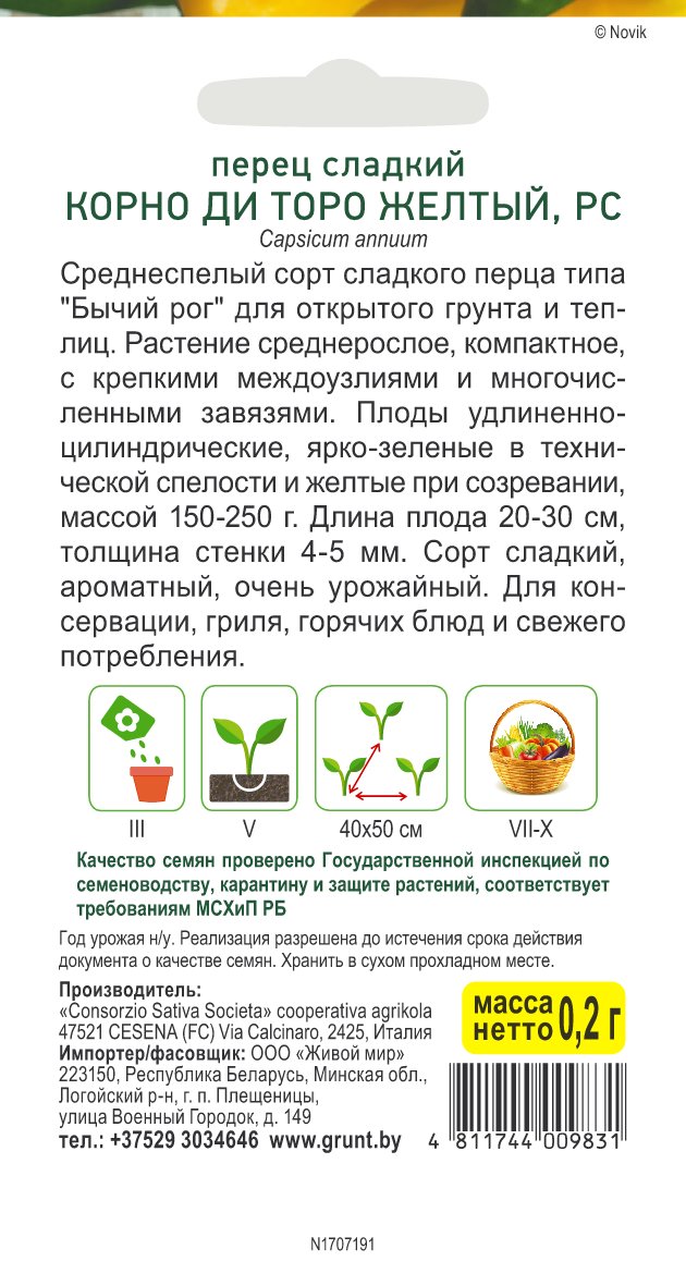 Перец сладкий Корно ди Торо желтый (Sativa) 0,2 г, РБ