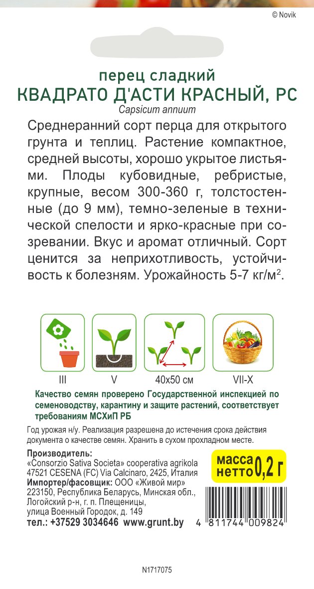 Перец сладкий Квадрато д'Асти красный (Sativa) 0,2 г, РБ