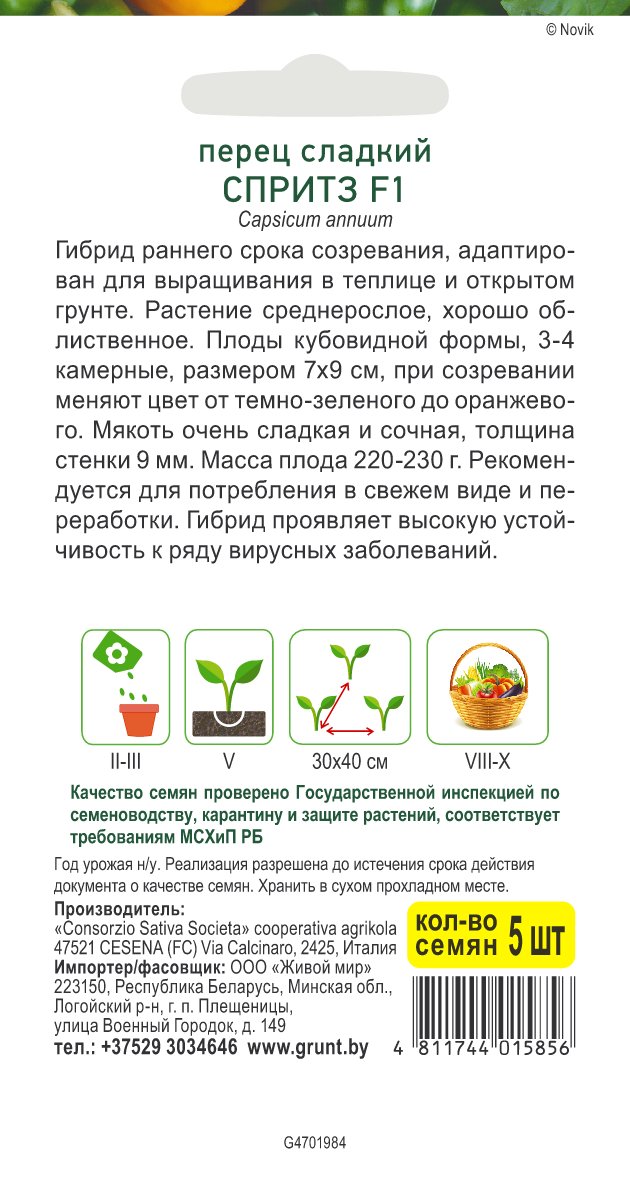Перец сладкий Спритз F1 (Sativa) 5 шт, РБ