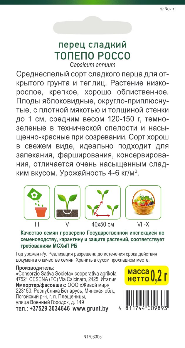 Перец сладкий Топепо Россо (Sativa) 0,2 г, РБ
