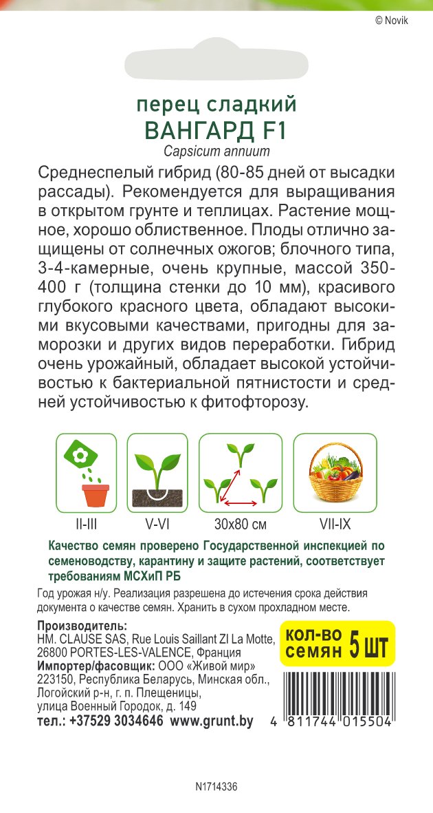 Перец сладкий Вангард F1 (Clause) 5 шт, РБ