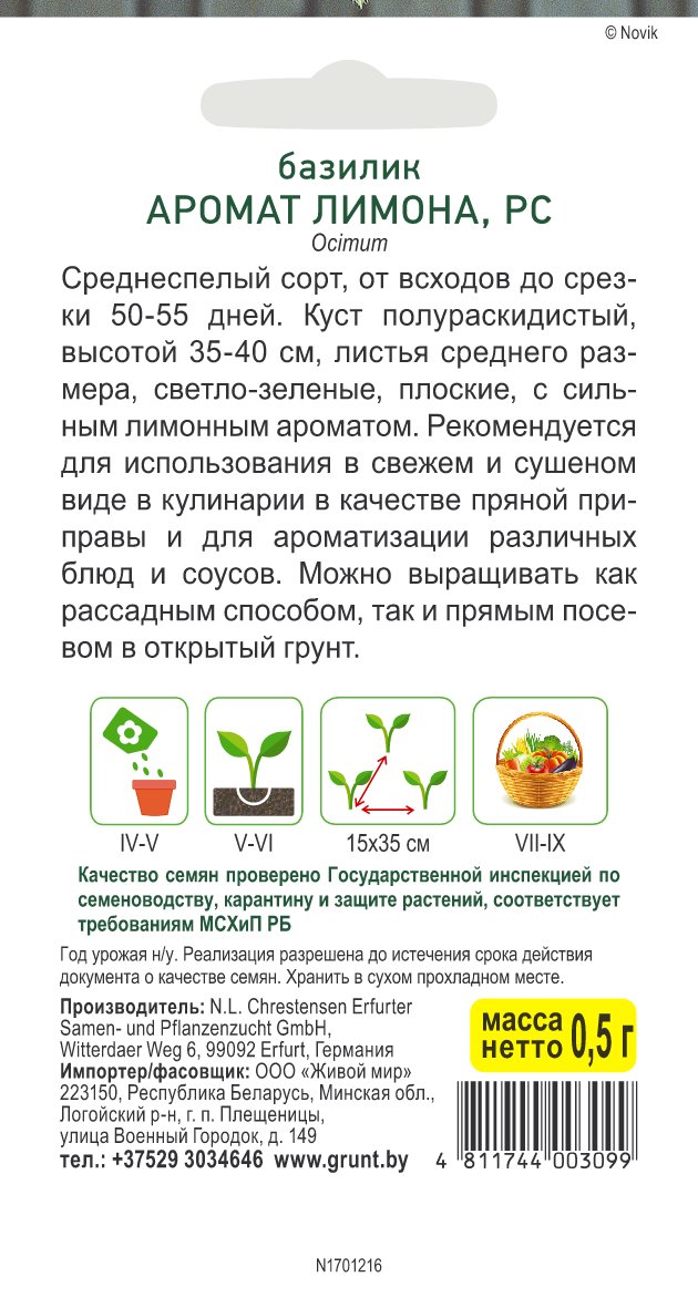 Базилик Аромат лимона (N.L.Chrestensen) 0,5 г, РБ