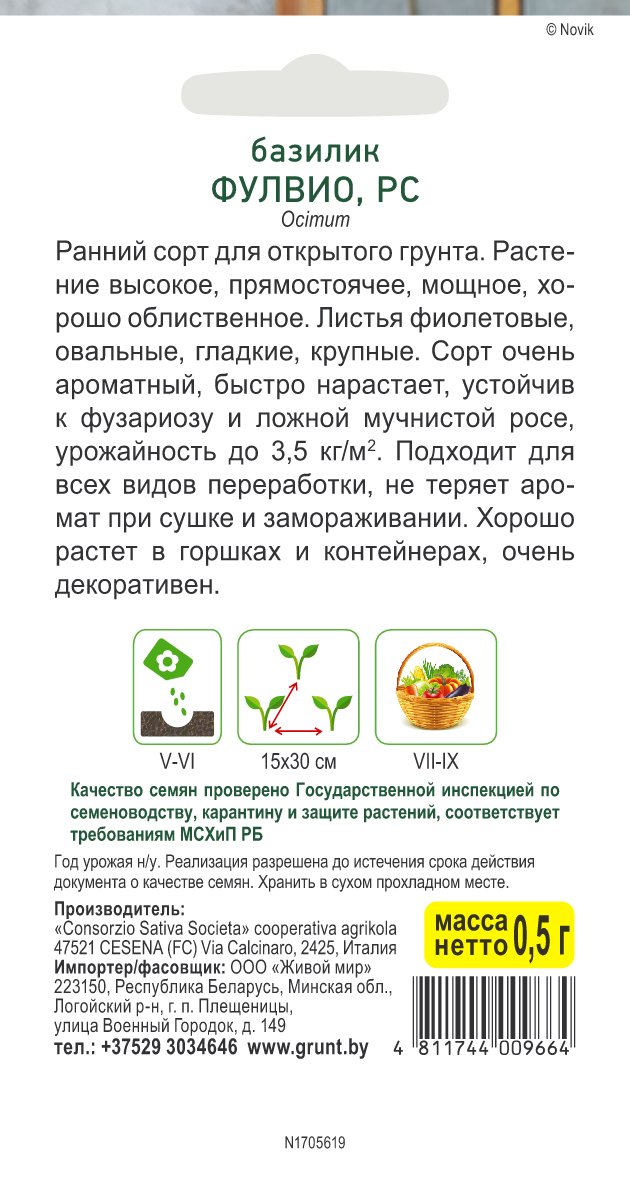 Базилик Фулвио (Sativa) 0,5 г, РБ