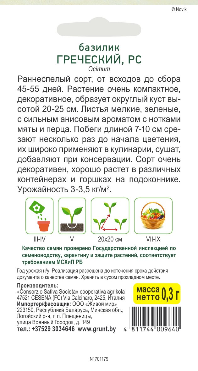 Базилик Греческий (Sativa) 0,3 г, РБ