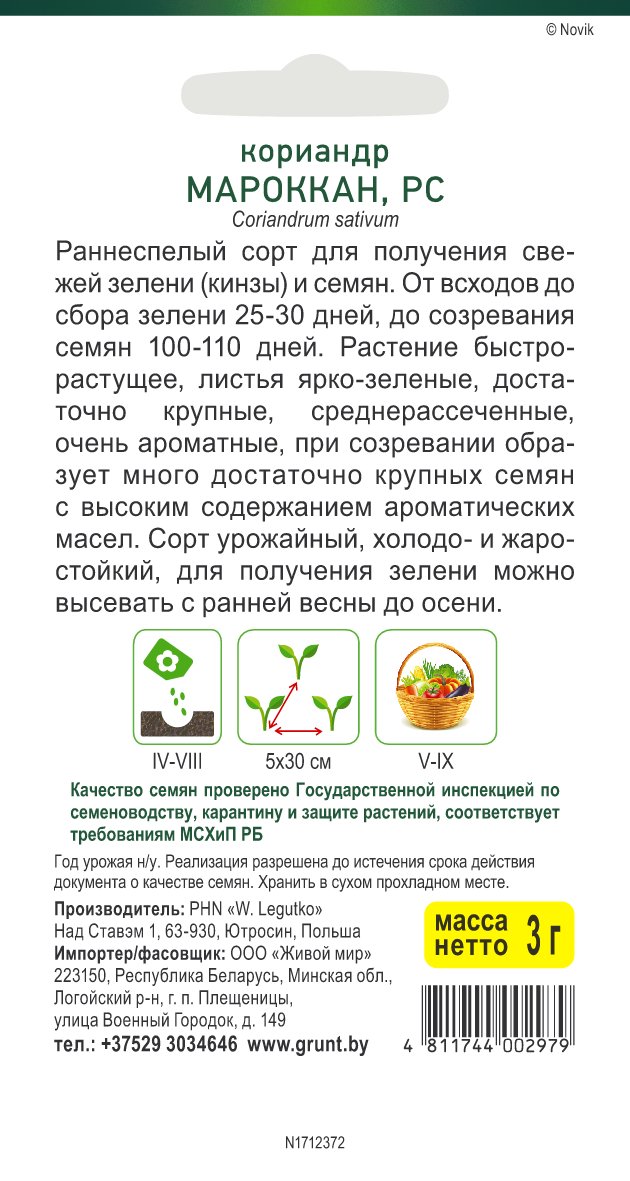 Кориандр Мароккан (W. Legutko) 3 г, РБ