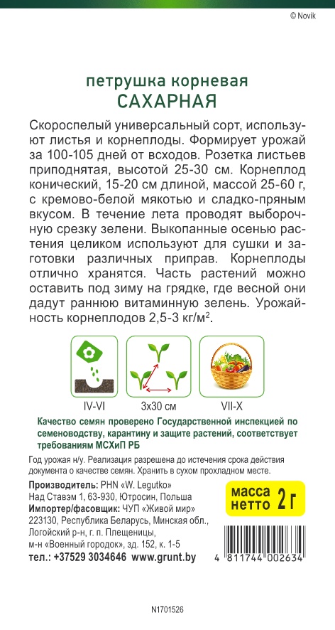 Петрушка корневая Сахарная (W. Legutko) 2 г, РБ