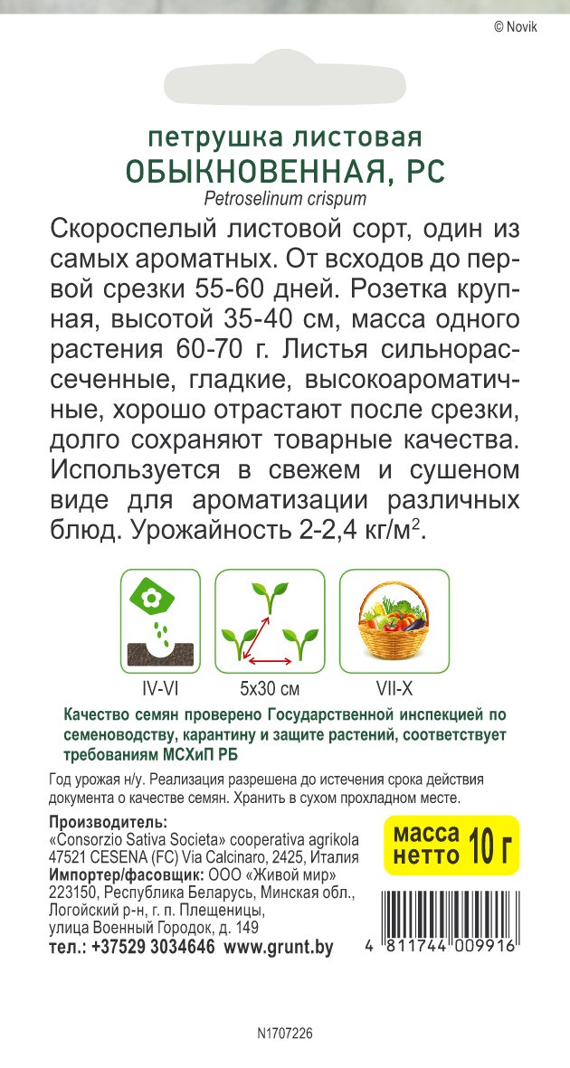 Петрушка листовая Обыкновенная (Sativa) 10 г, РБ