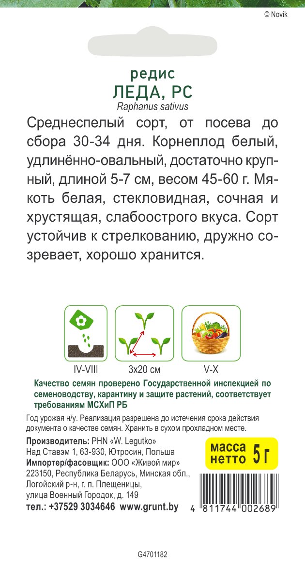 Среднеспелый сорт, от посева до сбора 30-34 дня.