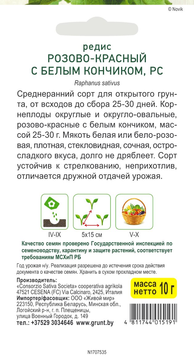 Редис Розово-красный с белым кончиком (Sativa) 10 г, РБ