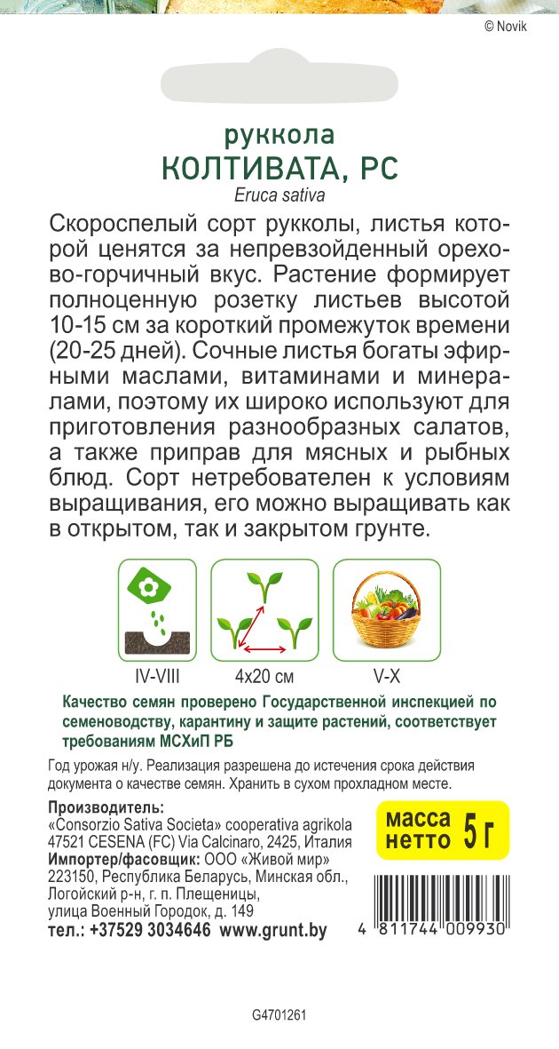Руккола Колтивата (Sativa) 5 г, РБ