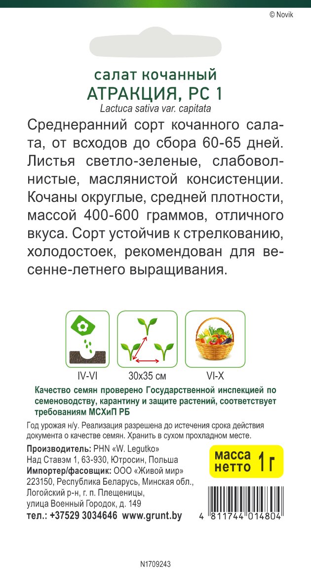 Салат кочанный Атракция (W. Legutko) 1 г, РБ
