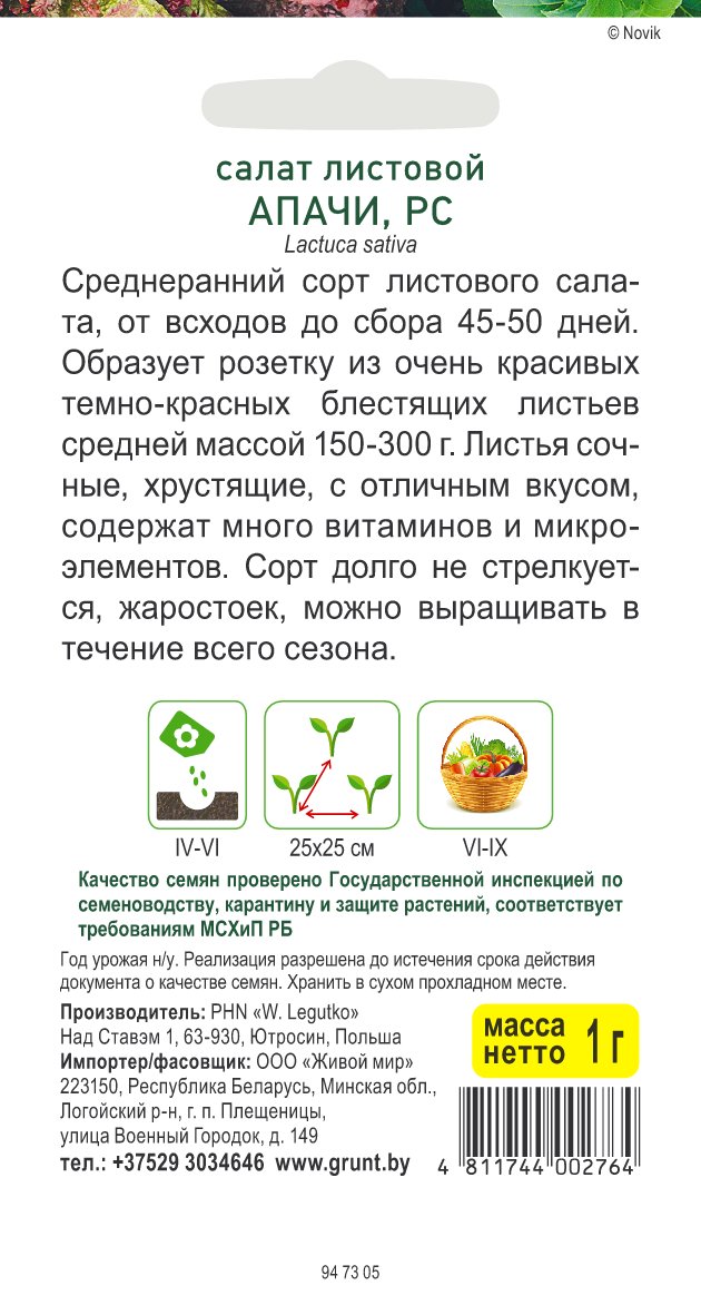 Салат листовой Апачи (W. Legutko) 1 г, РБ