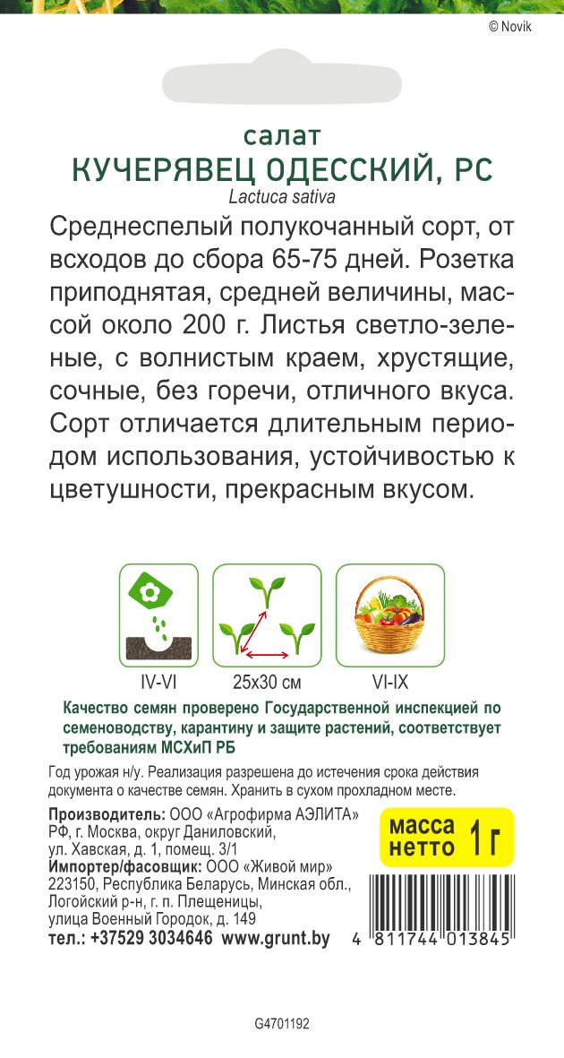 Салат листовой Кучерявец Одесский (Аэлита) 1 г, РБ