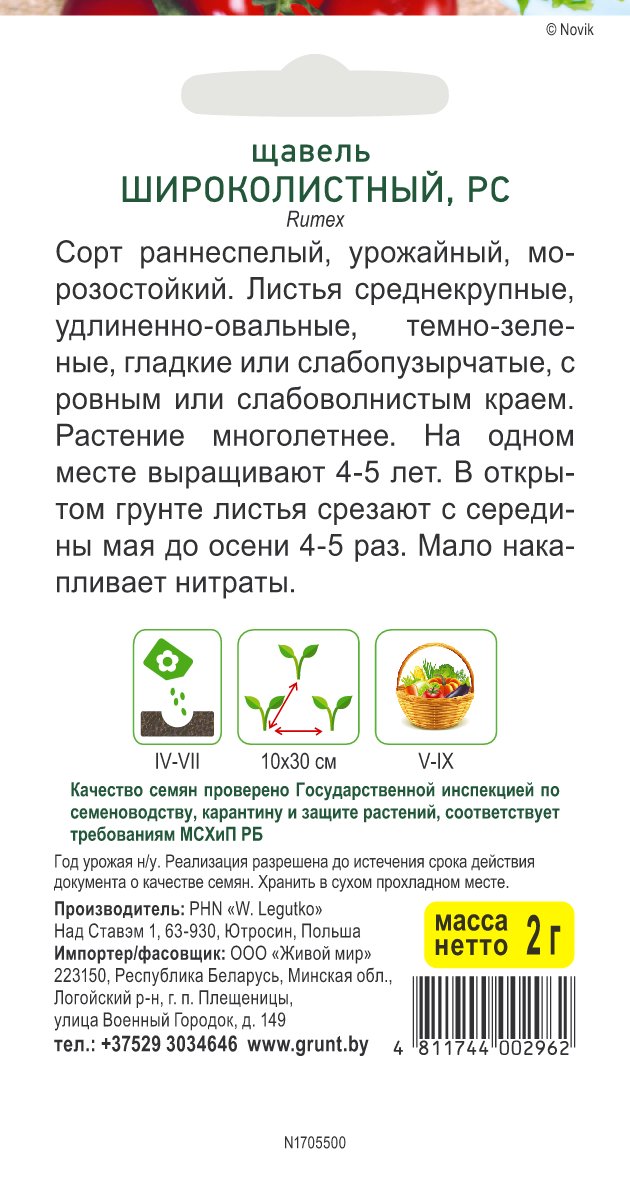 Щавель Широколистный (W. Legutko) 2 г, РБ
