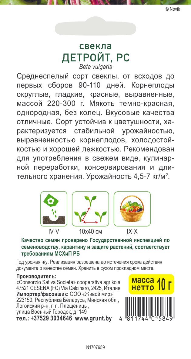 Свекла Детройт 2 (Sativa) 10 г, РБ