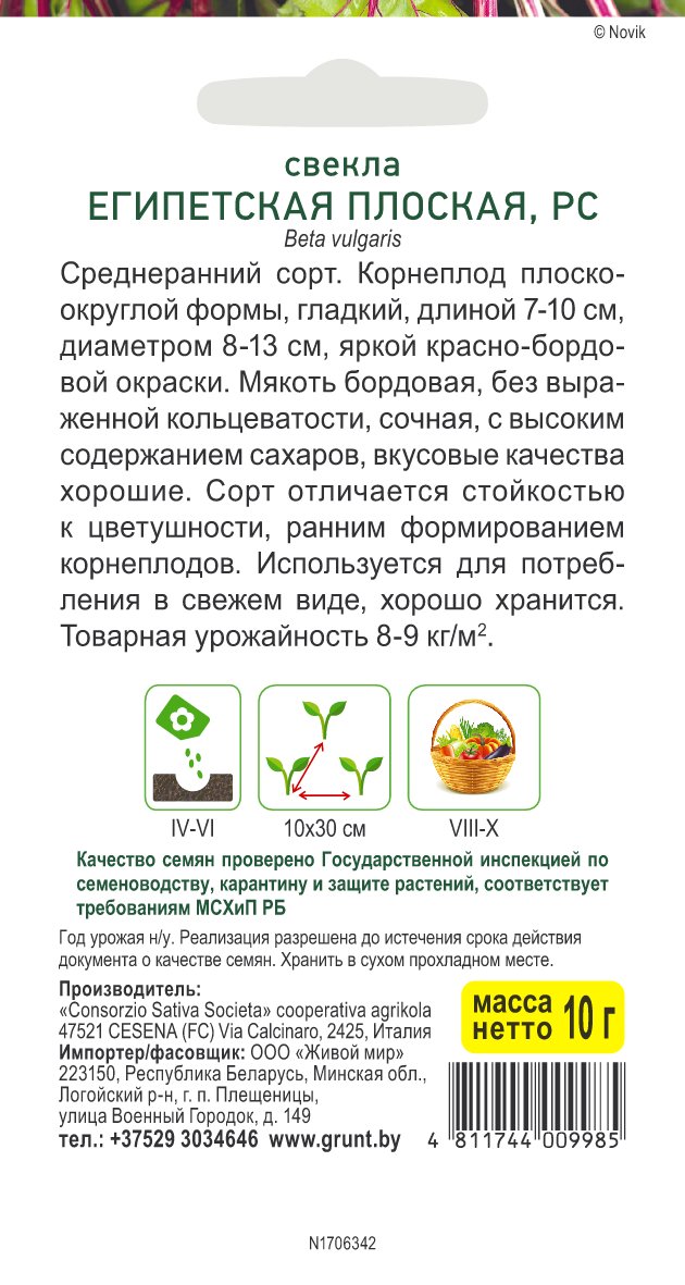 Свекла Египетская плоская (Sativa) 10 г, РБ