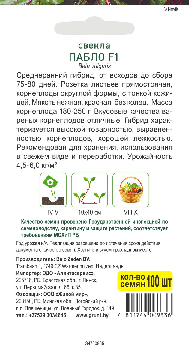 Свекла Пабло F1 (Bejo Zaden) 100 шт, РБ