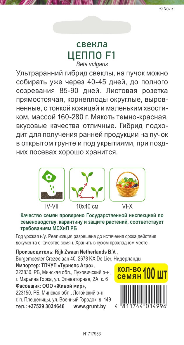 Свекла Цеппо F1 (Rijk Zwaan) 100 шт, РБ