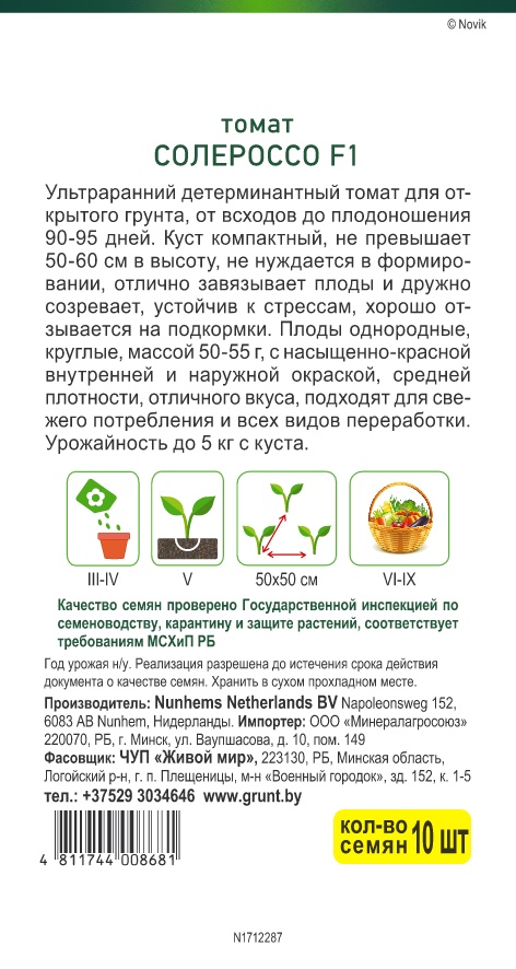 Томат Солероссо F1 (Nunhems) 10 шт, РБ