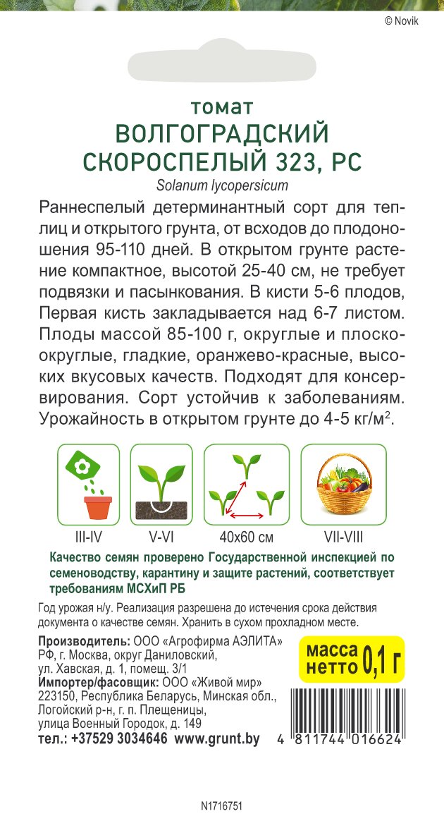 Томат Волгоградский скороспелый 323 (Аэлита) 0,1 г, РБ