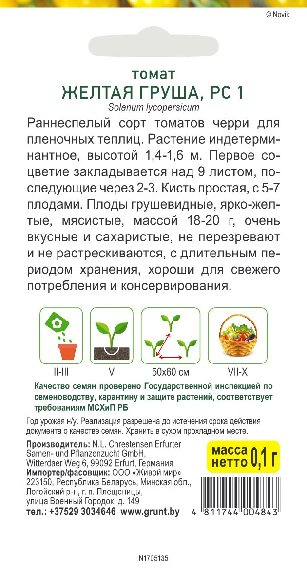 Томат Желтая груша (N.L.Chrestensen) 0,1 г, РБ
