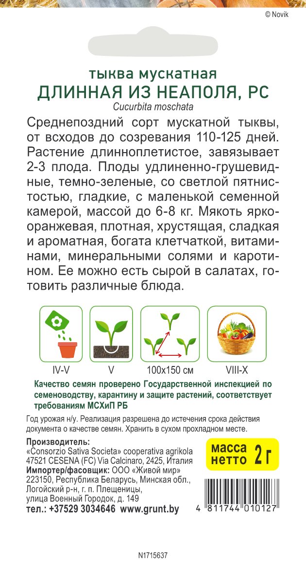 Тыква мускатная Длинная из Неаполя (Sativa) 2 г, РБ