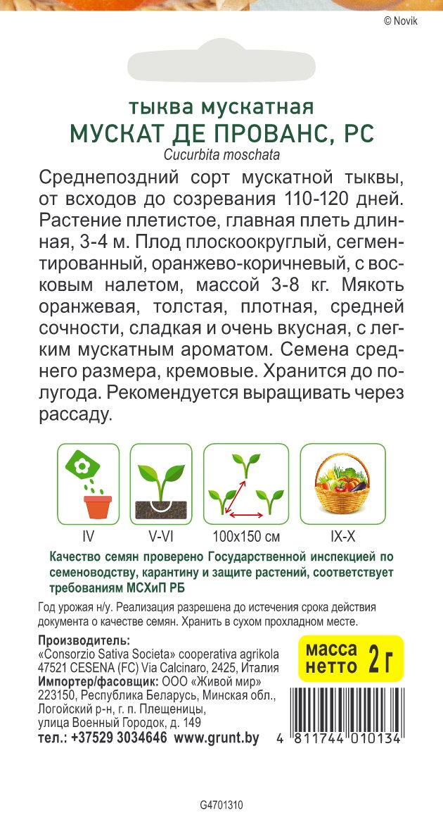 Тыква мускатная Мускат де Прованс (Sativa) 2 г, РБ