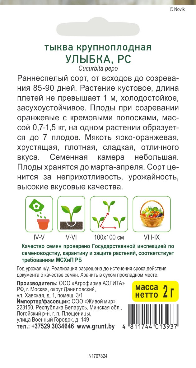 Тыква Улыбка крупноплодная (Аэлита) 2 г, РБ