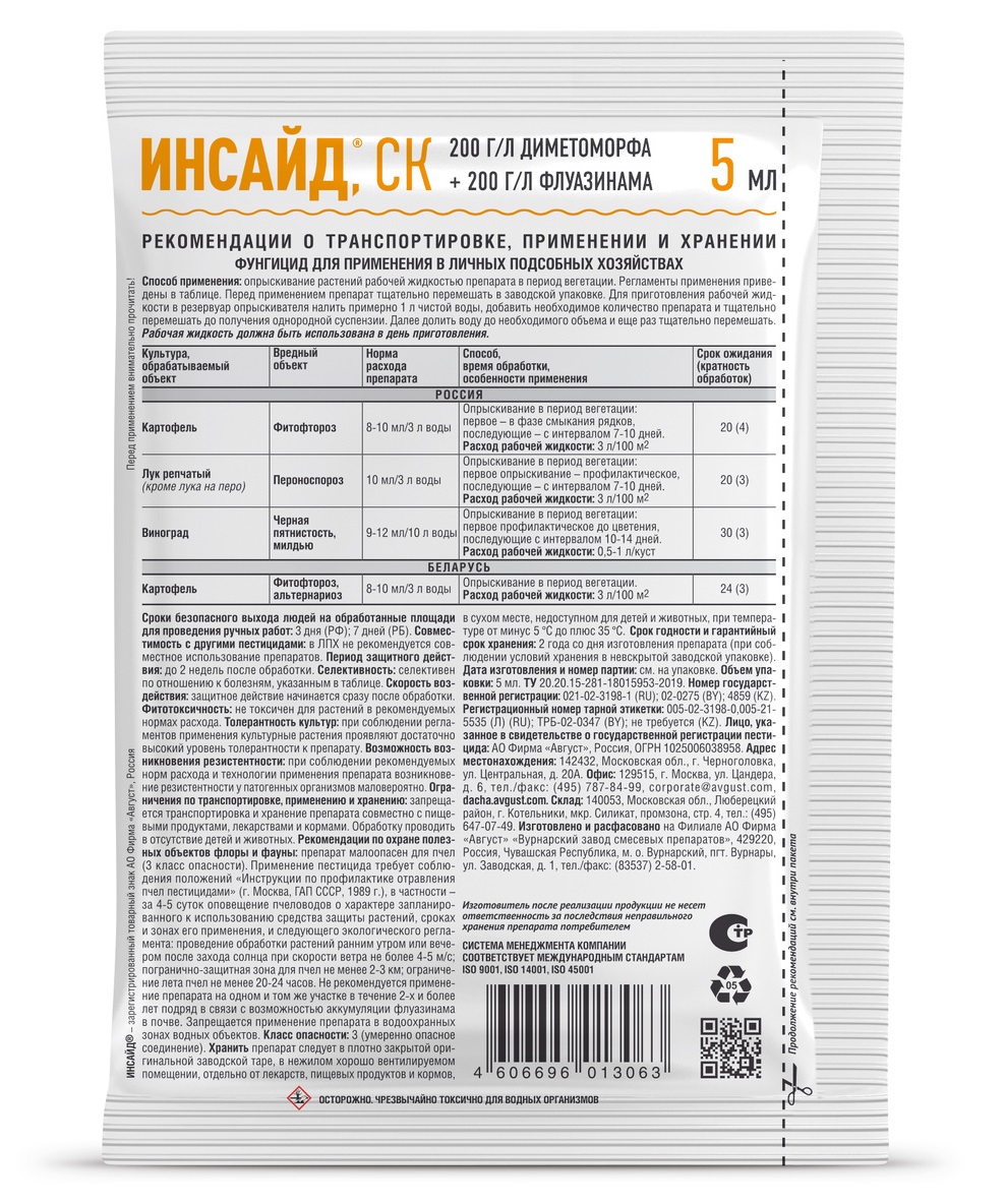 Действующее вещество: 200 г/л диметоморфа + 200 г/л флуазинама.