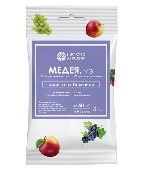 Благодаря своей препаративной форме – микроэмульсия – Медея мягко действует на культуру, не повреждая ее, не вызывая ожогов на листьях и сеточки на плодах, но эффективно борется с различными заболеваниями, а также продлевает сроки хранения продукции. Важно только, чтобы от обработки препаратом до сбора урожая прошло не менее 28 дней.