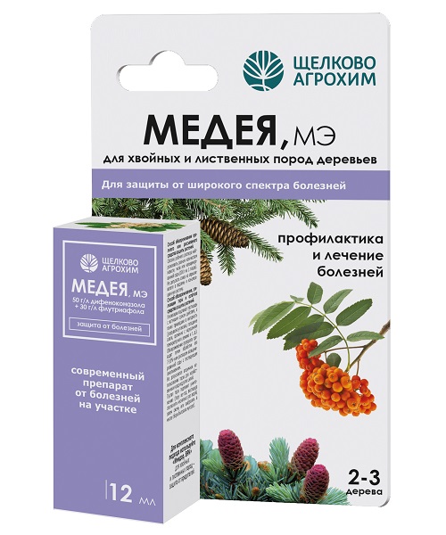 Профилактика и лечение хвойных пород от широкого спектра болезней (снежное и обыкновенное шютте, фомоз и др.). Быстро и продолжительно действует при любой погоде. Экономично расходуется и не выпадает в осадок. Безопасен для культуры. Быстро проникает в растение и останавливает заболевание на любой стадии его развития.