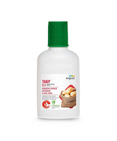 Защита от колорадского жука длится до 45 дней после появления всходов, а от проволочника – в течение всего периода его вредоносности. Препарат обладает высокой эффективностью независимо от погодных условий, в рекомендуемых дозах не токсичен для пчел, дождевых червей, птиц и млекопитающих. Расход Табу очень экономичен: 10 мл препарата хватает на 125 кг картофеля.