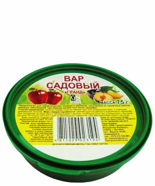 Предназначен для заживления ран плодовых деревьев, полученных от солнечных ожогов, раковых заболеваний, при обрезке ветвей или после прививки.