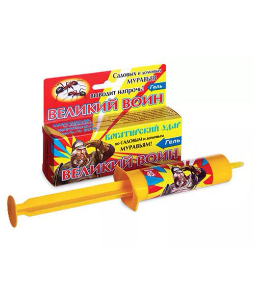 Уничтожает всю колонию муравьев. Высочайшая эффективность. Обладает длительным кишечным действием. Легко наносится в труднодоступные места обитания насекомых. Достаточно одной обработки на долгий срок. Гель - приманка с двумя веществами, губительными для муравьев. Специальный состав ее так привлекателен для насекомых, что рабочие особи не только охотно поедают ее сами, но приносят в муравейник и кормят личинок. Благодаря этому уже через несколько дней погибает вся муравьиная колония.