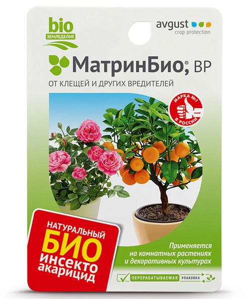 Имеет растительное происхождение. Максимальная безопасность при применении на тепличных культурах. Уничтожает разные стадии развития вредителей: яйца, личинки, взрослые особи. Последняя обработка возможна за 3 дня до сбора урожая.