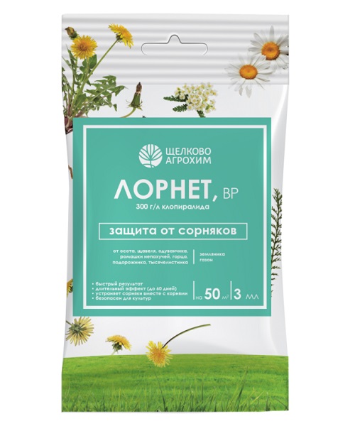 От сорняков на газонах и землянике. Селективный гербицид против двудольных однолетних и многолетних сорняков на газонах и землянике: ромашка, одуванчик лекарственный, различные виды осота, подорожник, щавель, тысячелистник и другие трудноискоренимые сорняки. Не оказывает вредного влияния на газон и землянику. Надежно обеспечивает долговременный эффект. Проникает до корней, полностью уничтожает как наземную, так и корневую систему сорняка.