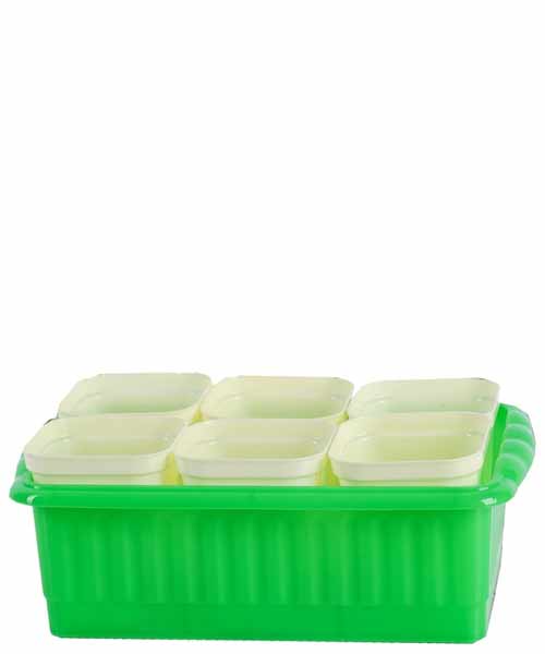 Ящик для выращивания цветов и рассады домашних условиях. В рассадник входят ящик размером 247*166*82 и 6 стаканчиков с выдвижным дном (объем стакана 250 мл). Такая конструкция стаканчика помогает бережно пересаживать рассаду в открытый грунт, не задевая корни растений. Легкий рассадник небольшого размера компактно помещается на узких подоконниках и стеллажах для рассады. Предназначен для многоразового использования, не деформируется, легко моется. Изготовлен из качественного пластика, не выделяет вредных запахов и безопасен при использовании в быту.