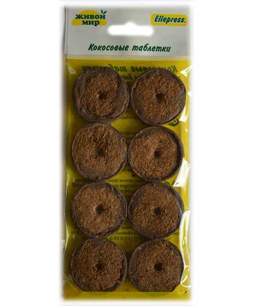 Основные преимущества использования кокосовых таблеток ELLEPRESS: Значительная экономия площади при выращивании рассады. За счёт повышенной влагоёмкости таблеток сокращается частота поливов. Бумага способствует прорастанию корней, после пересадки в открытый грунт она полностью разлагается и не доставляет хлопот по уборке участка. Семена прорастают на 3-5 дней раньше чем в обычном грунте. Замачивание семян не требуется, их можно сразу сажать в торфяную таблетку. Торфяные таблетки ELLEPRESS не занимают много места, что делает удобными их покупку и хранение. Количество белого финского торфа в каждой таблетке строго дозировано и одинаково.